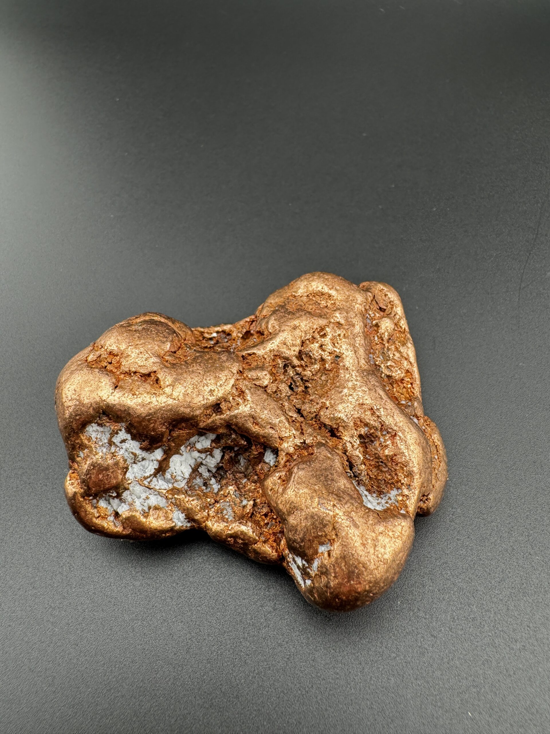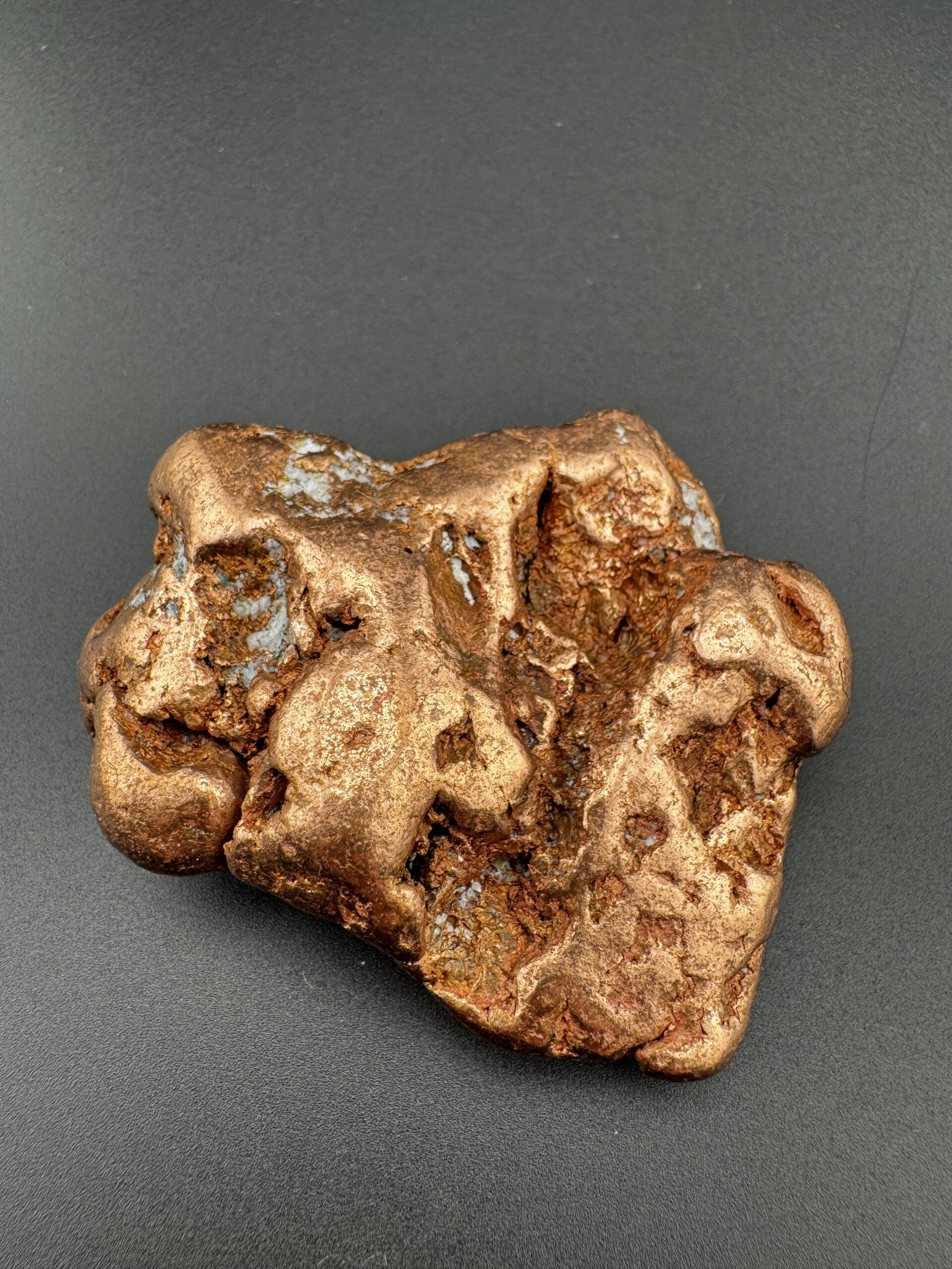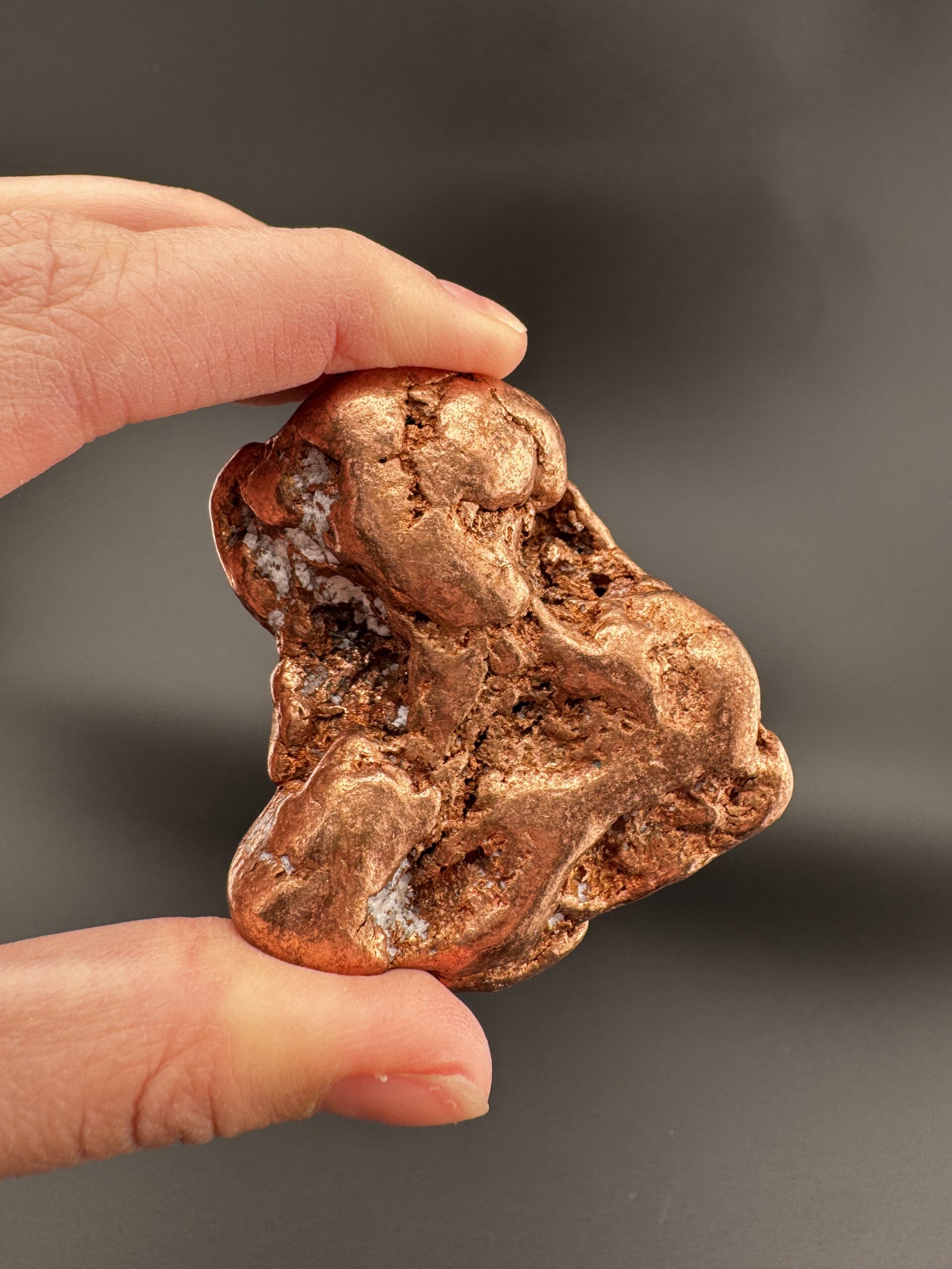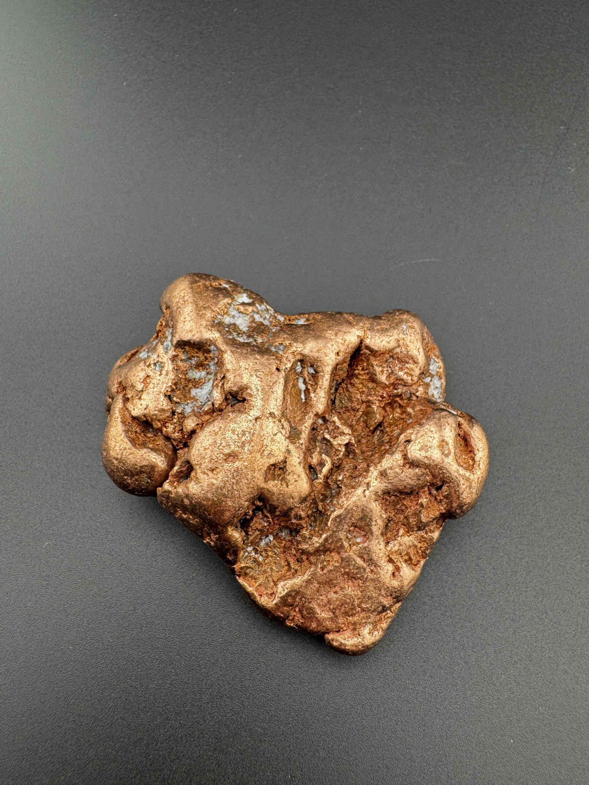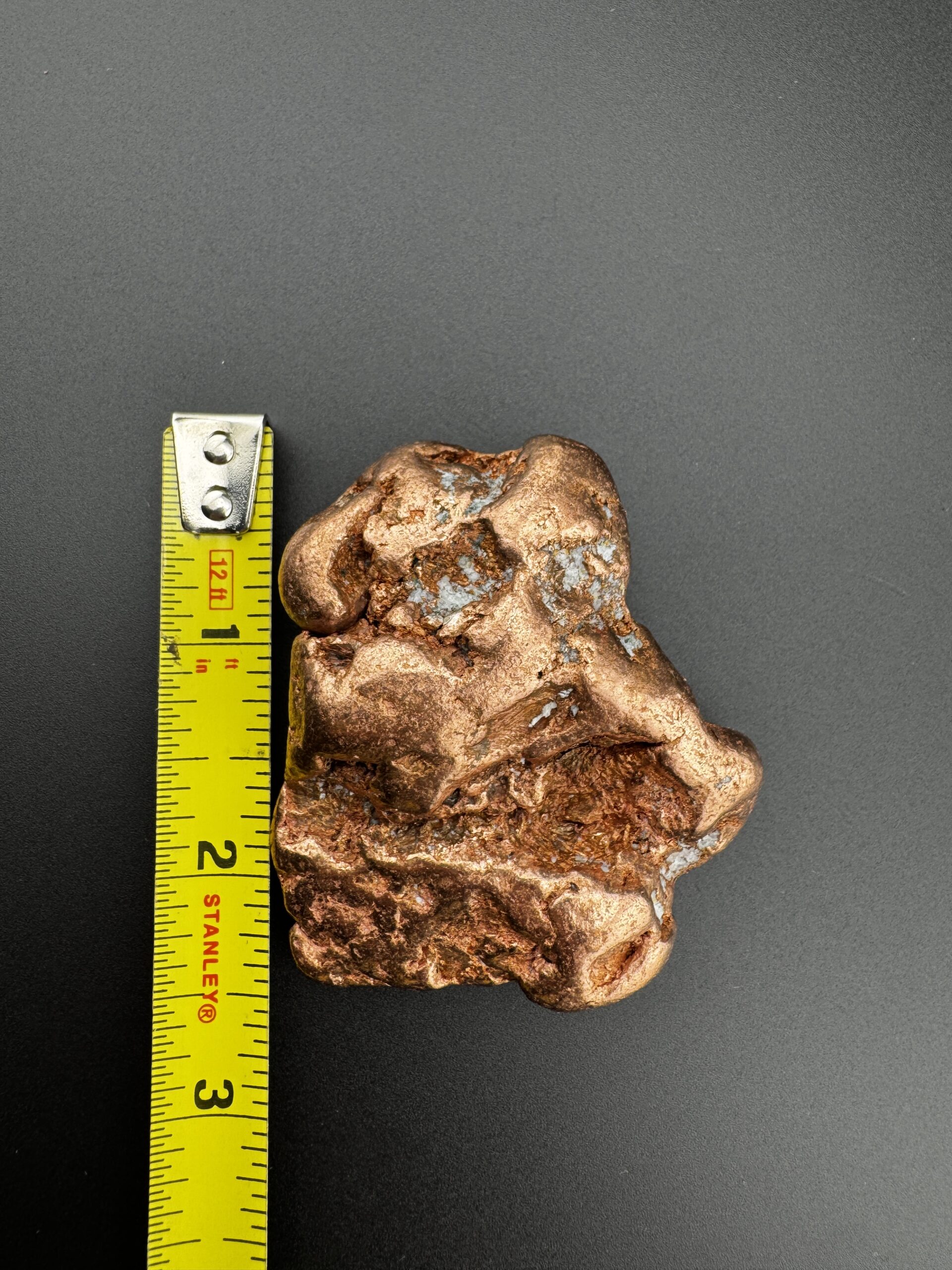 Own a piece of American mining history with this Michigan copper nugget. This copper nugget weighs 6.4 ounces and just over 2 inches in length. Naturally formed and rich in metallic luster, this nugget showcases the raw beauty of copper. A unique piece that is sure to stand out in any collection.